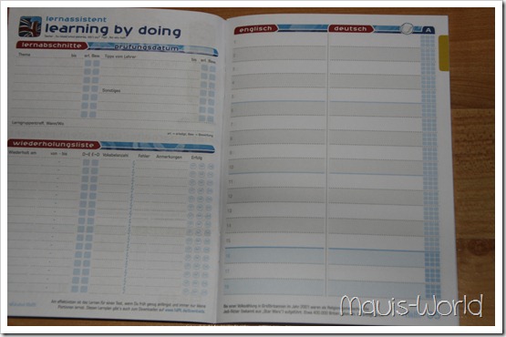 Ein paar Seiten weiter kann man seine Vokabeln eintragen in den jeweiligen Spalten englisch/ deutsch. Dies vereinfacht das Lernen enorm, weil es so einfach viel übersichtlicher ist.
